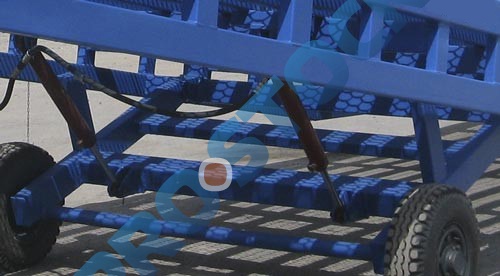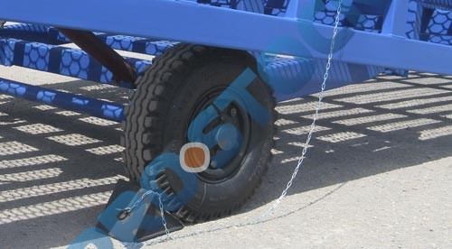 Кроме этого, в комплект поставки входят цепи для надежного крепления рампы к грузовому транспортному средству, и стопорные тормоза, фиксирующие колеса и предотвращающие самопроизвольное движение.