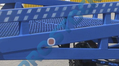 Мобильная гидравлическая рампа является надежной металлической конструкцией, способной выдерживать большие нагрузки (6000 - 12000 кг) и заезжать погрузчику с захватом вилки с уровня пола или земли в транспортное средство. Главными элементами конструкции являются: