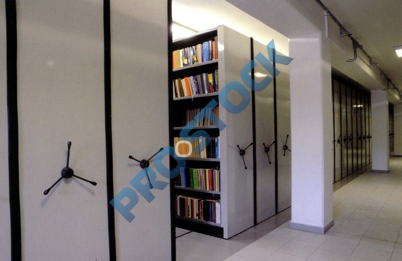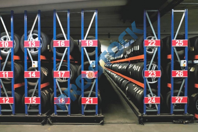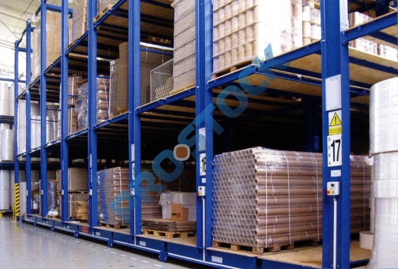Передвижные стеллажи (мобильные стеллажи, перекатные стеллажи) – обеспечивают максимальное использование объема склада при одновременном доступе к любой ячейке хранимого груза в любое время. Функциональная особенность мобильной системы позволяет сократить проходы между стеллажами до одного. При возникновении необходимости доступа к определенному грузу необходимые стеллажные ряды размыкаются с помощью пульта управления. За счет такого экономичного размещения стеллажей – площадь складского помещения используется наиболее рационально.