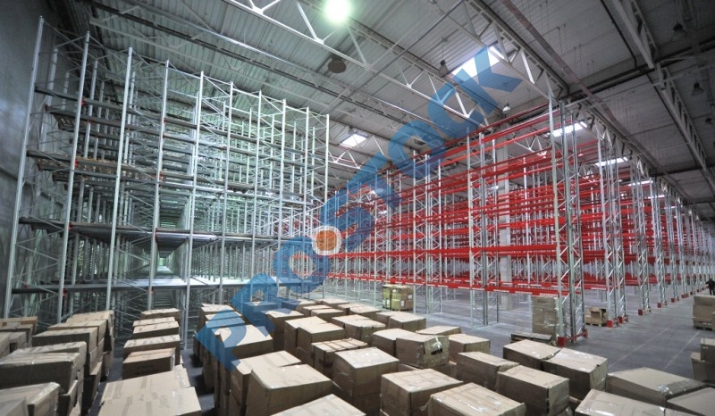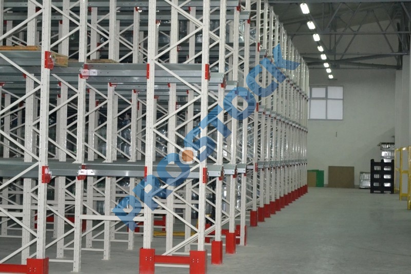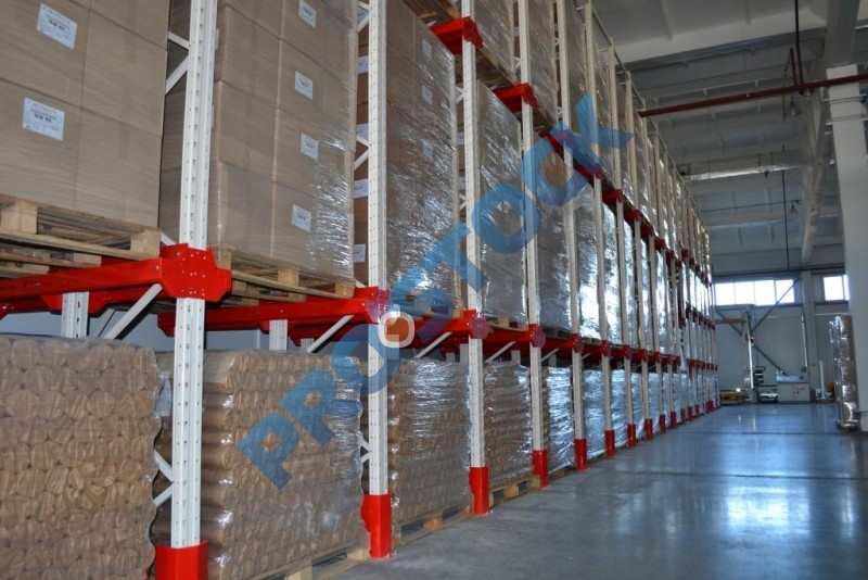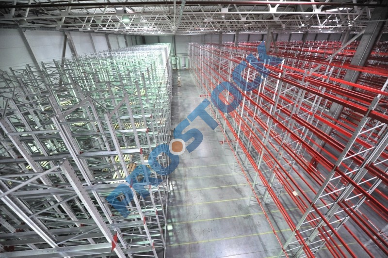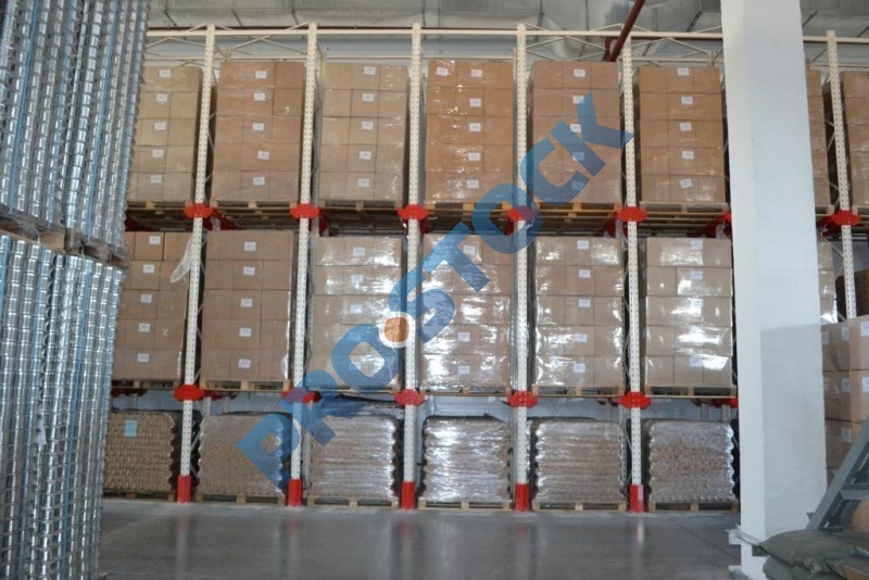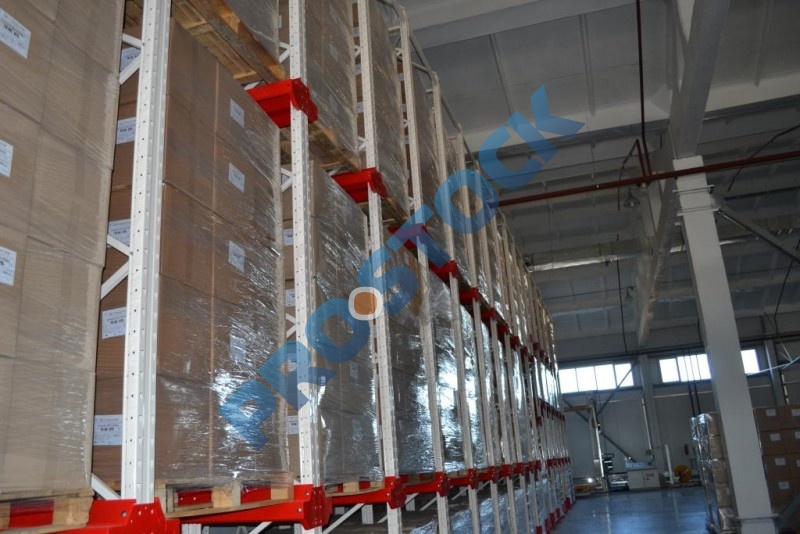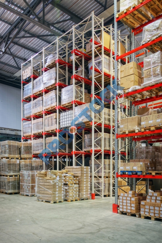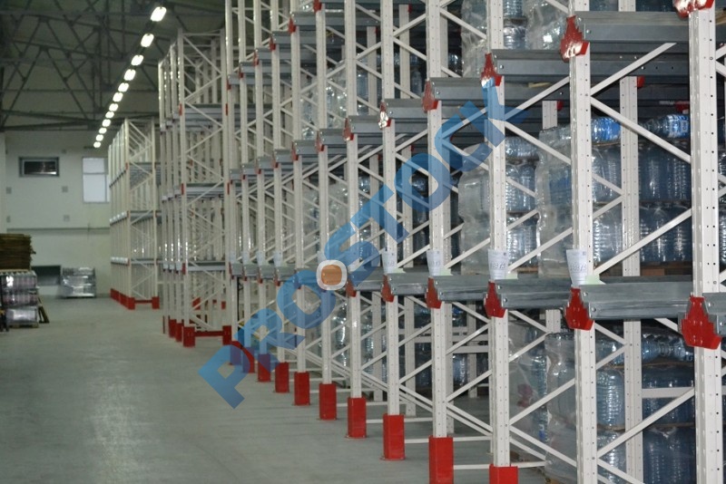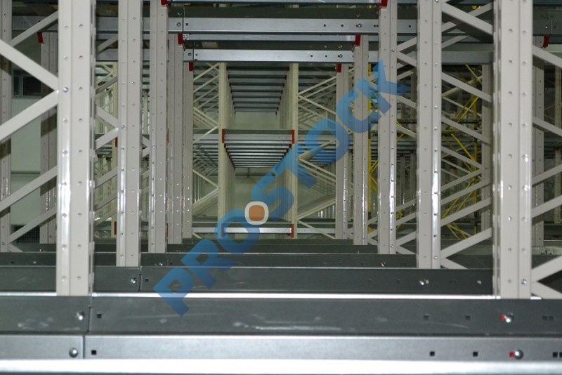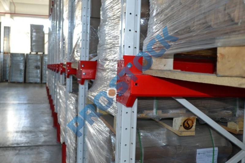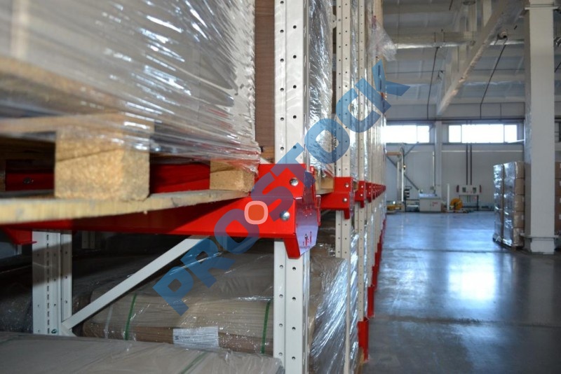 Основным достоинством стеллажей этого типа является максимальное использование полезной площади склада (70-80%), что достигается за счет минимизации количества рабочих коридоров для проездов складской техники.